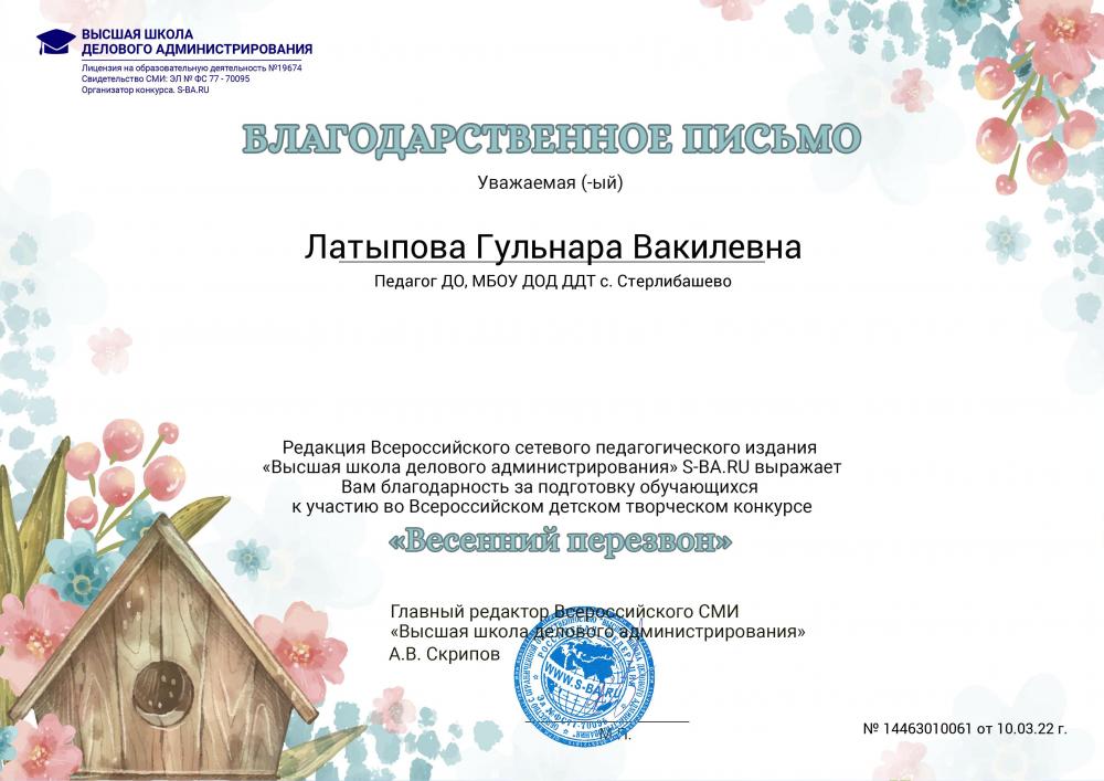 Муниципальное бюджетное образовательное учреждение дополнительного образования детей Дом детского творчества с.Стерлибашево