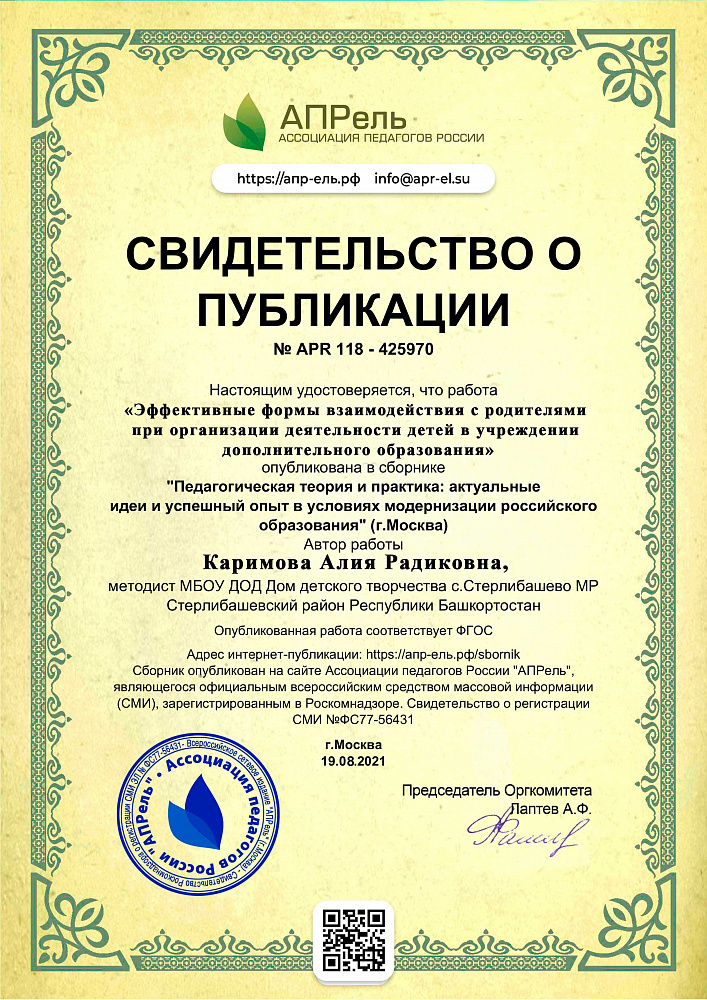 Муниципальное бюджетное образовательное учреждение дополнительного образования детей Дом детского творчества с.Стерлибашево