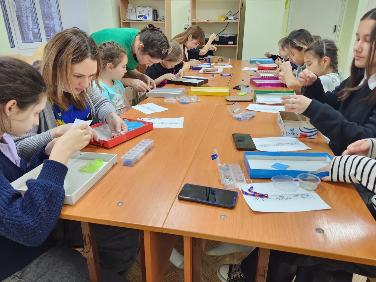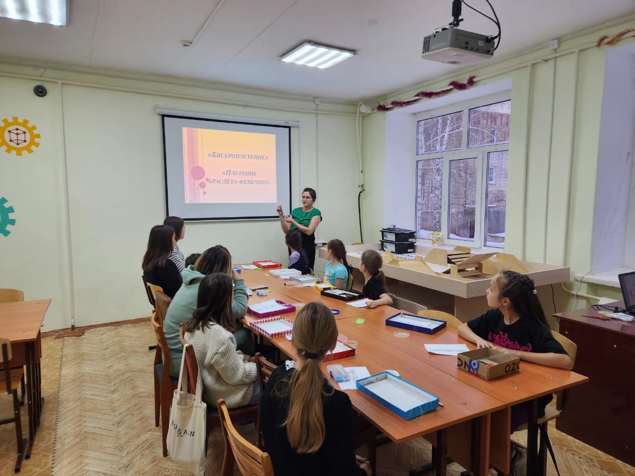 15 декабря в творческом объединении «Бисероплетение» (руководитель Г.В.Латыпова) состоялось открытое занятие на тему: «Плетение браслета-фенечки». Обучающиеся вместе со своими родителями, которые были приглашены на занятие, сплели браслеты-фенечки с узором на зимнюю тематику.