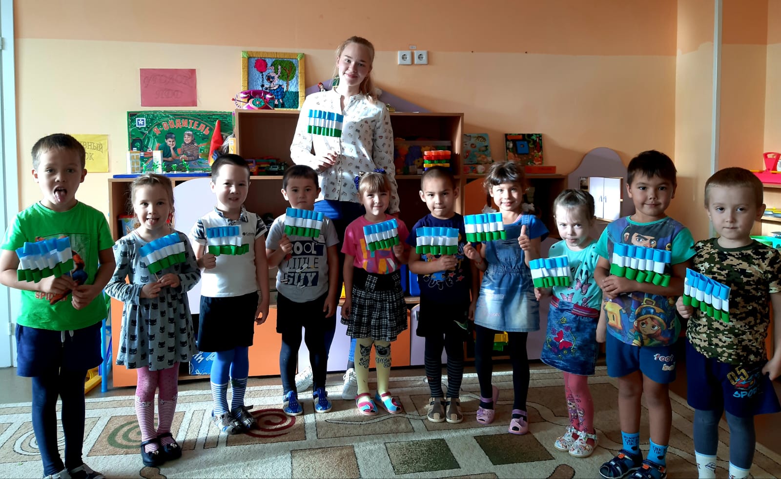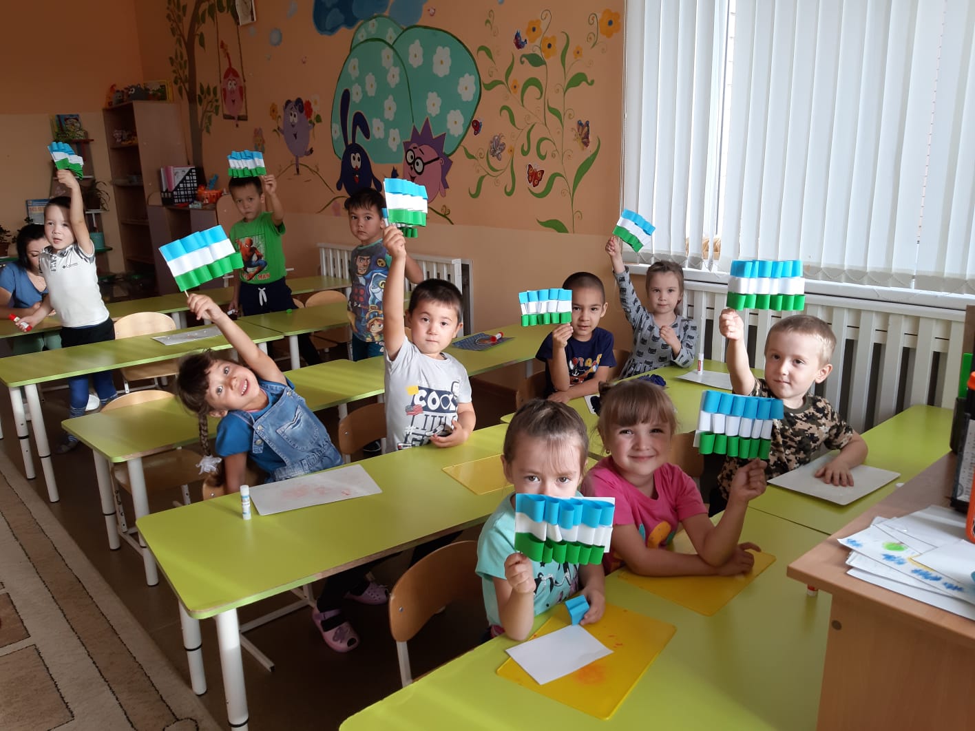 С целью формирования у воспитанников детского сада целостного представления о родном крае, воспитания познавательного интереса, любви к своей малой Родине, в преддверии Дня Республики, прошло занятие "Цвети, родной Башкортостан". В ходе занятия мы познакомились с флагом нашей Республики. Обсудили, из каких цветов состоит флаг Башкортостана, и какое значение несёт каждый из его цветов. Затем каждый изготовил макет своего развевающегося флага.