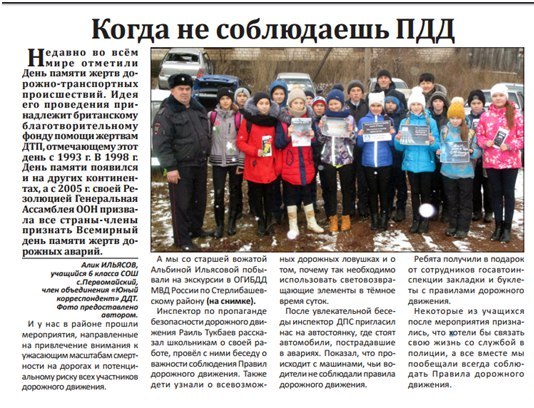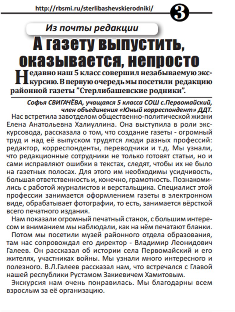 Обучающиеся объединения "Юный корреспондент" МБОУ ДОД ДДТ с. Стерлибашево активно печатаются на страницах районной газеты "Стерлибашевские родники".