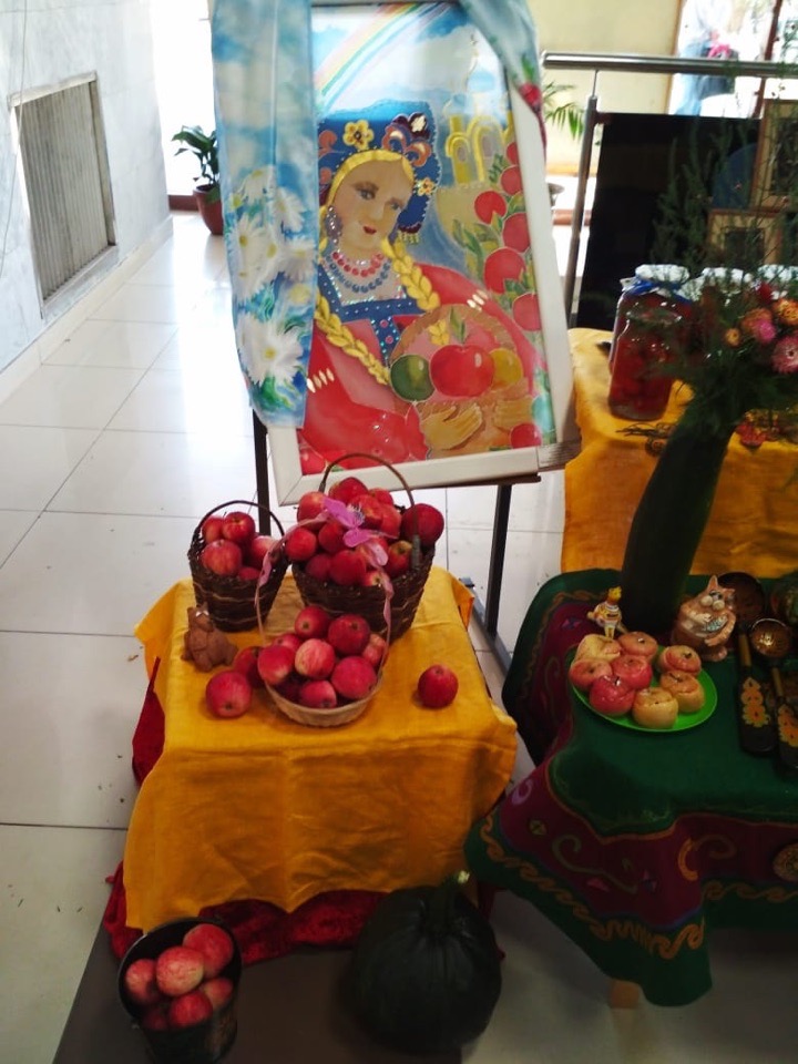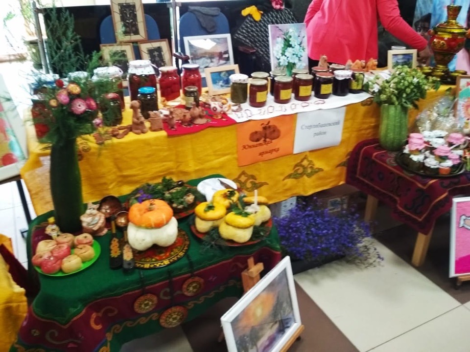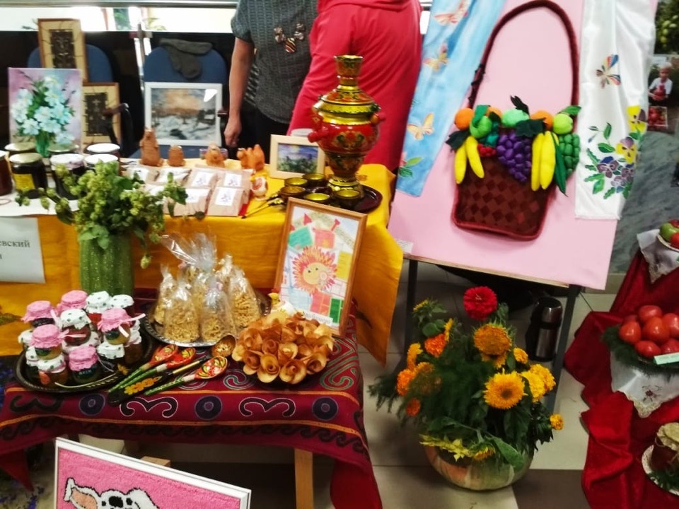 войлока, кожи, батика, гобилена, пуховые изделия, свистульки из глины, браслеты-обереги. Маленькие тыквы, начиненные вкусной кашей с изюмом выглядили очень аппетитно и необычно, деревенские яблоки в плетенных корзинках, запеченные