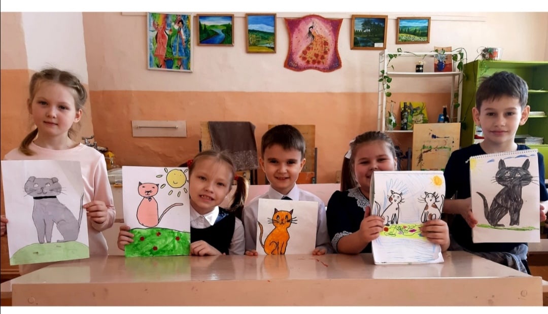 Мы с детками не могли не отметить это событие, так как являемся большими поклонниками ласковых и умных животных. Поэтому и занятия в этот день в объединении "Изобразительное искусство" были посвящены любимым кошкам.