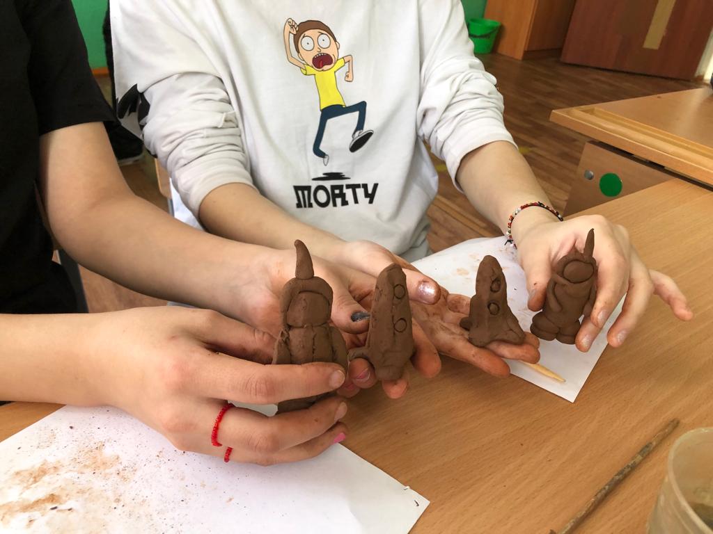 Обучающиеся с огромным желанием слепили космонавтов и космическую ракету. Из готовых работ организовали выставку в фойе школы.