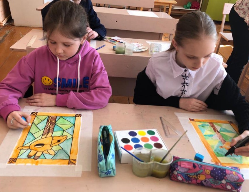 18 апреля в творческом объединении "Изобразительное искусство" (руководитель А.Р. Кожевина) состоялось открытое занятие "Живет в Африке жираф", в ходе которого мы с ребятами совершили увлекательное путешествие в богатую красками Африку, где встретились с одним удивительным животным, которое невозможно ни с кем спутать: настолько он восхищает взор своим необычным окрасом, видом и своеобразной красотой. И изобразили его в стиле витраж на бумаге.