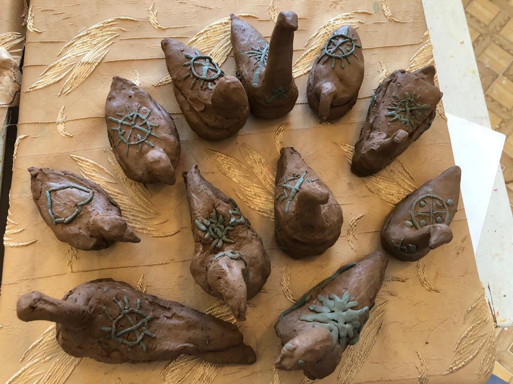 Обучающиеся вместе с родителями слепили шкатулку в форме утки и декорировали орнаментом северных народов.