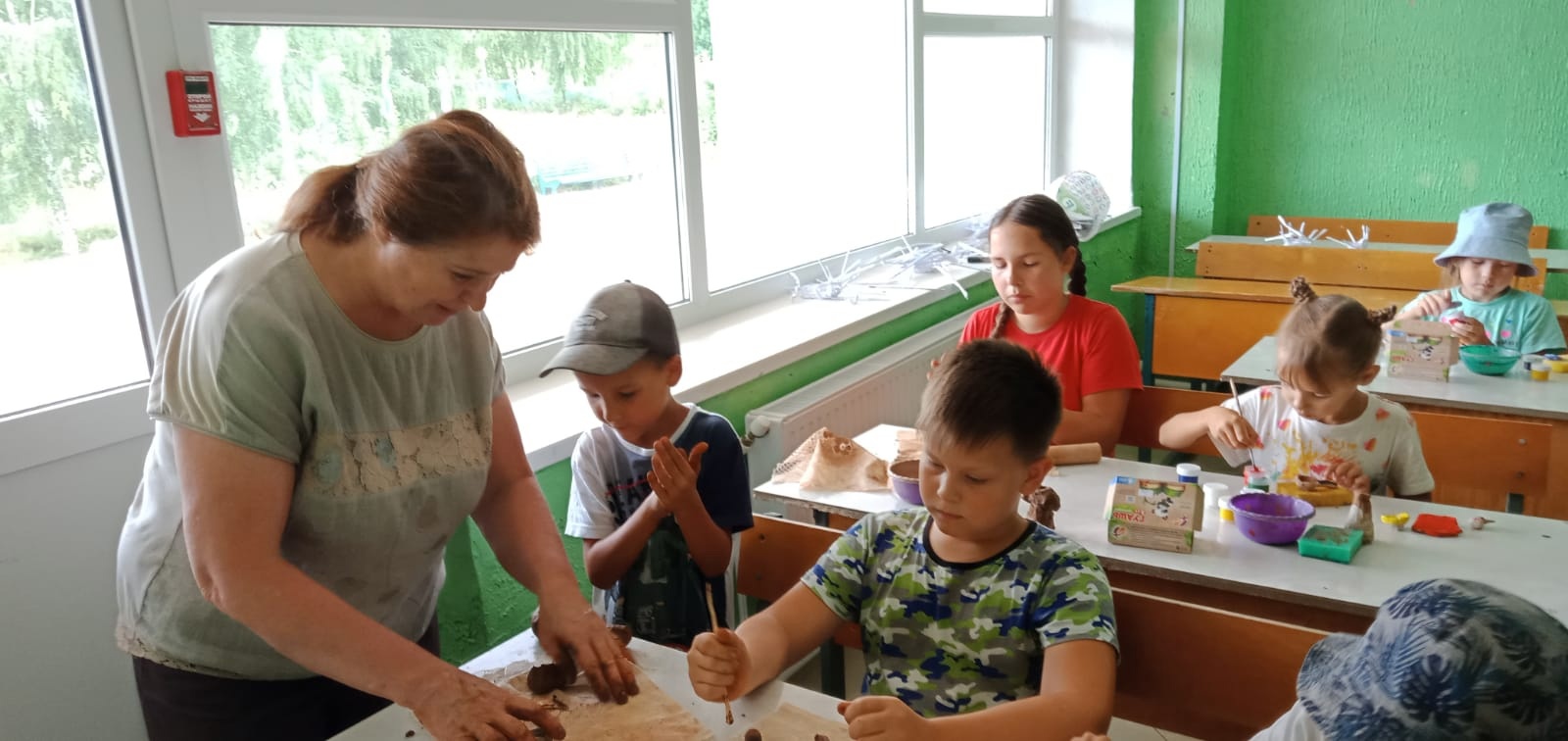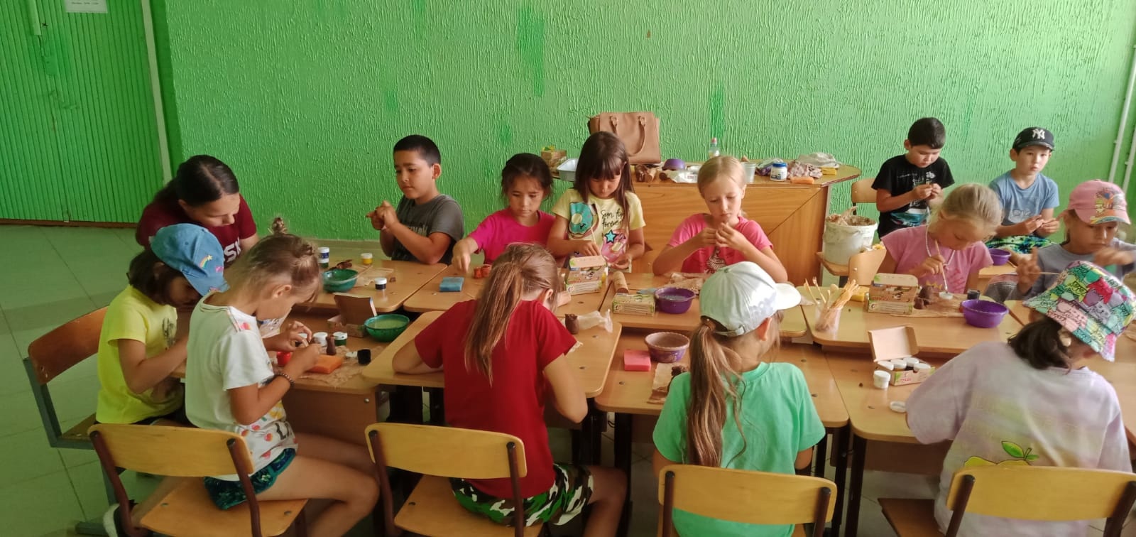 Активная деятельность педагогов дополнительного образования МБОУ ДОД Дом детского творчества с.Стерлибашево в рамках летней профильной смены в оздоровительном детском лагере "Орлёнок" продолжается. Юные мастера и мастерицы под чутким руководством педагогов постигают азы лепки из природной глины, художественной росписи по камням и изготовлении картин в технике кинусайга.