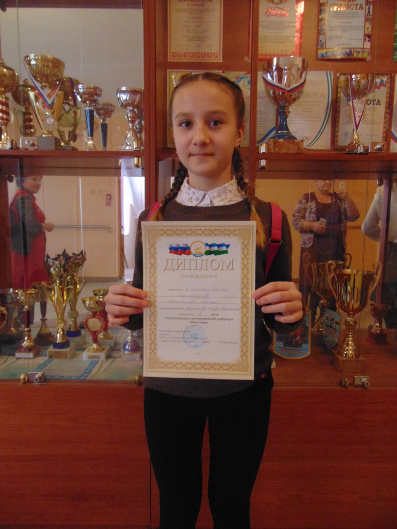 В последний день зимы, 28 февраля 2019 г., обучающаяся объединения «Хобби и Я» МБОУ ДОД ДДТ с.Стерлибашево Маннанова Айгиза Ильшатовна (руководитель Маннанова А.Ф.) приняла участие в республиканской научно-практической конференции «Шаг в науку», прошедшей в Салаватском колледже образования и профессиональных технологий. На данной конференции из нашего района также приняли участие обучающиеся МБОУ СОШ №2 с.Стерлибашево и МБОУ СОШ с.Первомайский, было много обучающихся из городов Мелеуз, Салават, Ишимбай, Стерлитамак, из Кармаскалинского, Кугарчинского, Мелеузовского, Стерлитамакского, Ишимбайского, Аургазинского, Кушнаренковского, Бижбулякского, Куюргазинского и других районов.