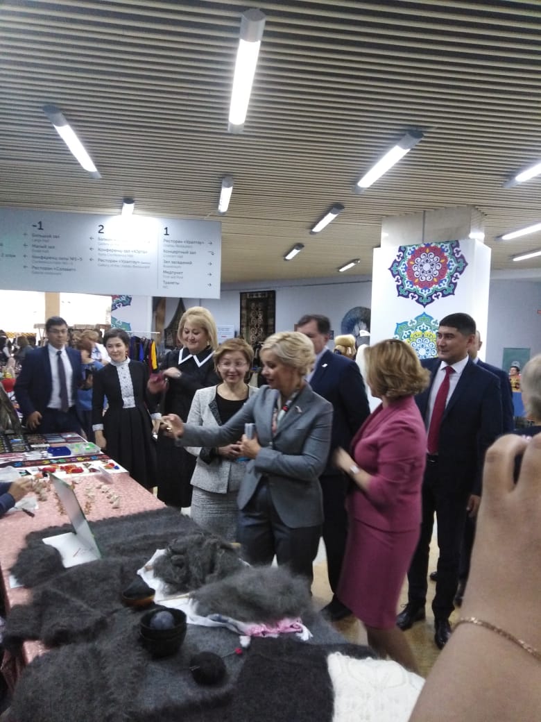 С 27 по 30 сентября в здании Конгресс-холла "Торатау" г. Уфа состоялся Всероссийский съезд директоров клубных учреждений, в котором приняли участие около 200 человек из 60 субъектов Российской Федерации. На форум приехали заместитель министра культуры Российской Федерации Ольга Ярилова, директор Российского дома народного творчества Тамара Пуртова, министр культуры Республики Башкортостан Амина Шафикова. В рамках съезда была организована выставка изделий мастеров народного декоративно-прикладного творчества. Народному клубу мастеров пуховой шали "Стәрлебаш биҙәктәре" выпала честь представить Стерлибашевский район. Мастерицы клуба Лилия Тимербаева (педагог ДДТ с.Стерлибашево), Сария Рысаева, Сария Галимова продемонстрировали мастер-классы по изготовлению шали от чески пуха до вязания узоров, вызвав огромный интерес у участников съезда, мастеров других муниципалитетов и посетителей выставки.