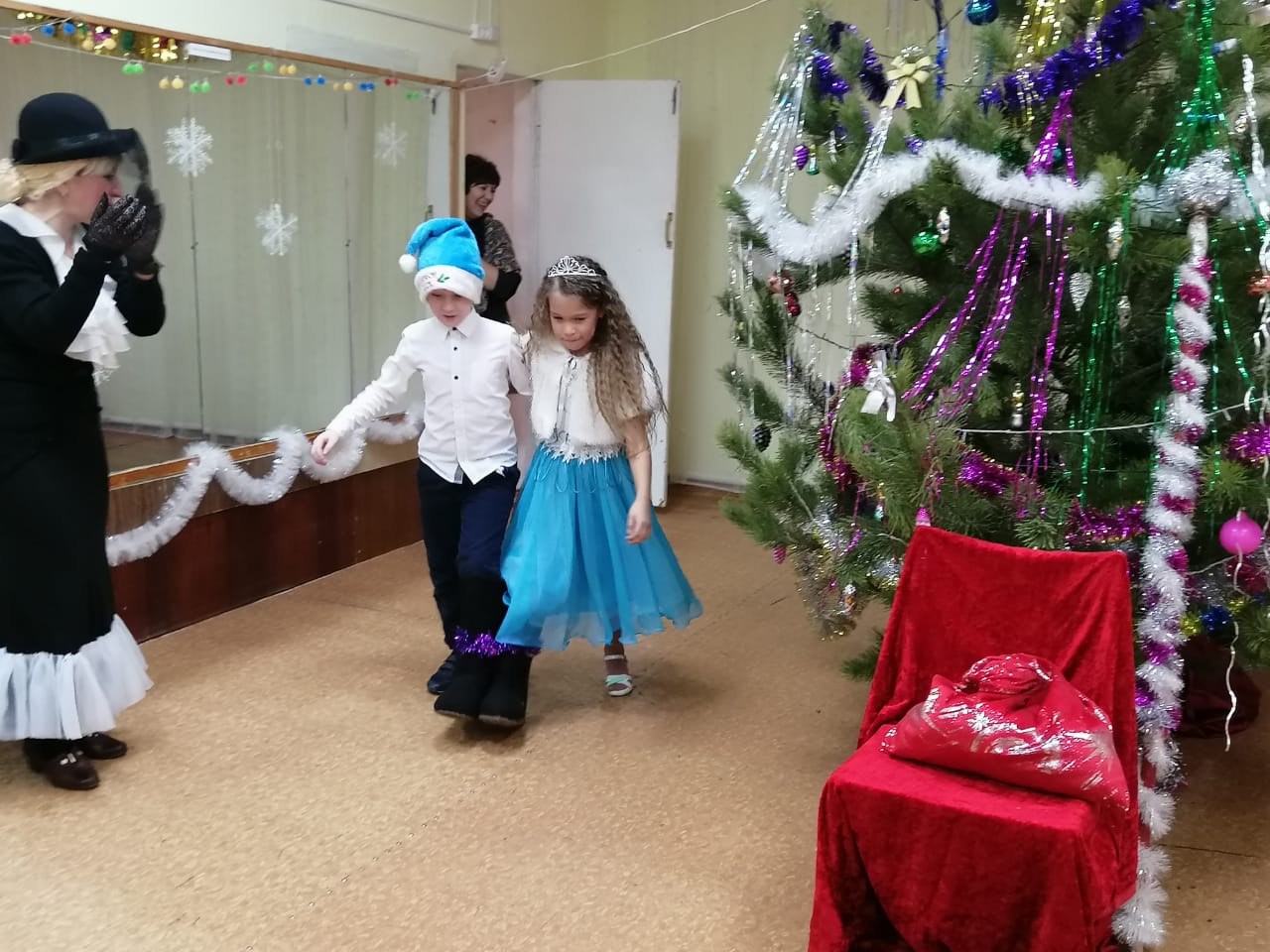 В ожидании Деда Мороза и Снегурочки обучающиеся наблюдали за проказами Шапокляк и Бабы-Яги, с большим удовольствием встретили почтальона Печкина, приняли участие в веселых играх возле новогодней елки.