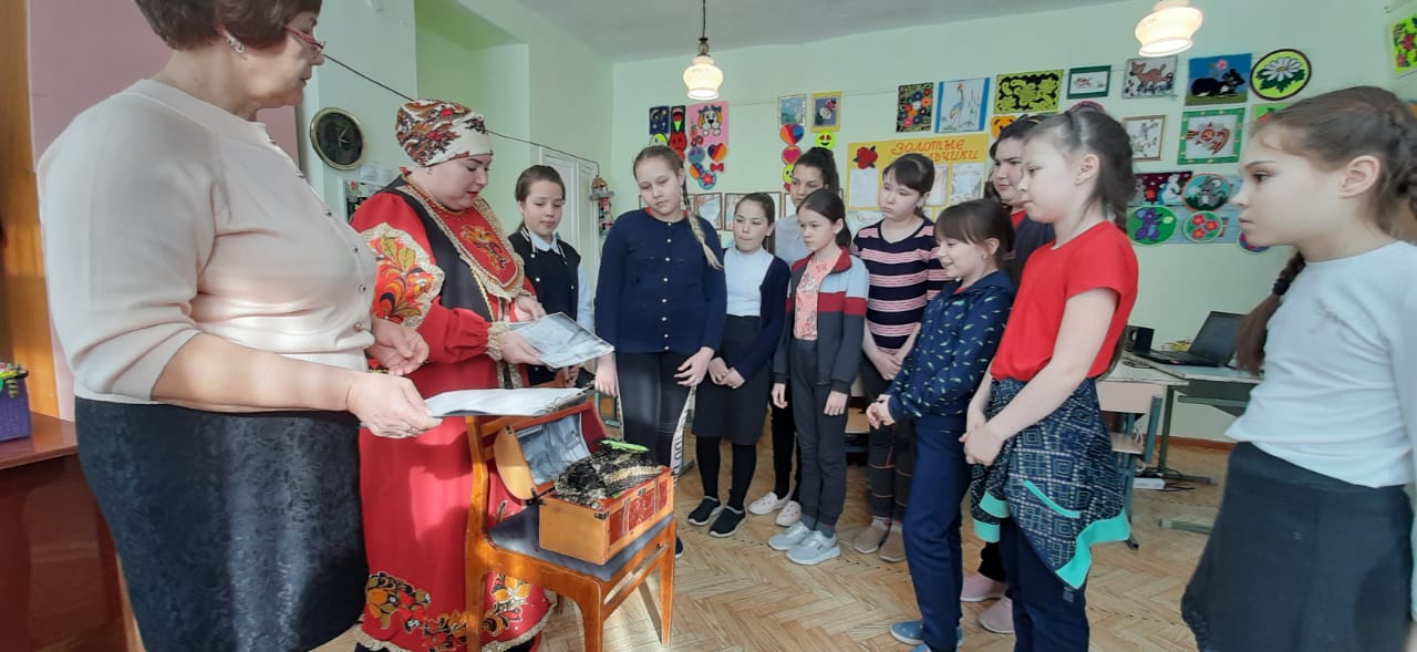 Вместе с гостьей занятия мастерицей Марьей Искусницей обучающиеся познакомились с новым видом декоративно-прикладного искусства – ткачеством, узнали об истории, различных техниках, инструментах, научились технологии одного из видов ткачества, параллельно развивая умение отгадывать интересные загадки. Сундучок, который принесла с собой мастерица, был наполнен наглядными примерами ткачества: пояс, очелье, половичок, бёрдышко, картина ткацкого станка, образцы изделий, в результате чего обучающиеся могли рассмотреть, изучить и прикоснуться к истокам старинных традиций русских мастеров-ткачей.
