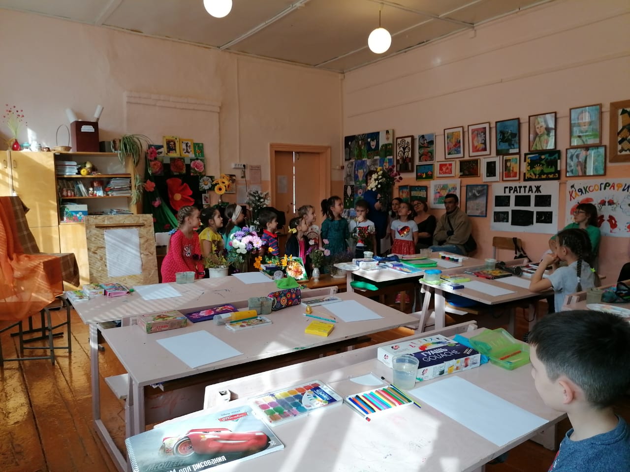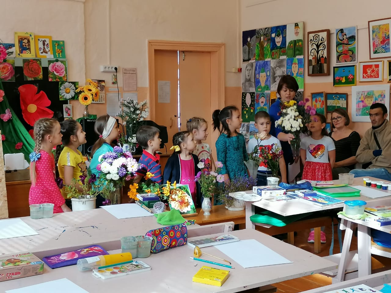 Воспитанники закрепили представления о многообразии осенних цветов, познакомились с новой техникой изображения астр.