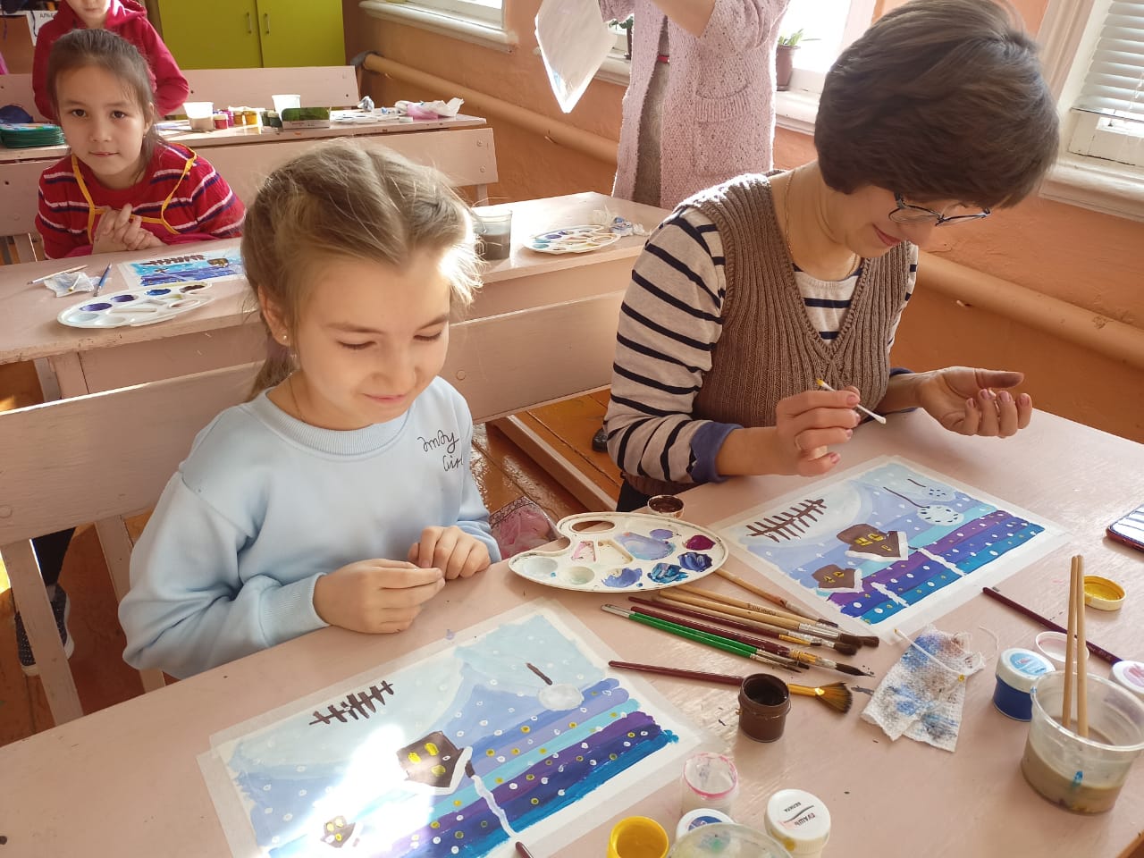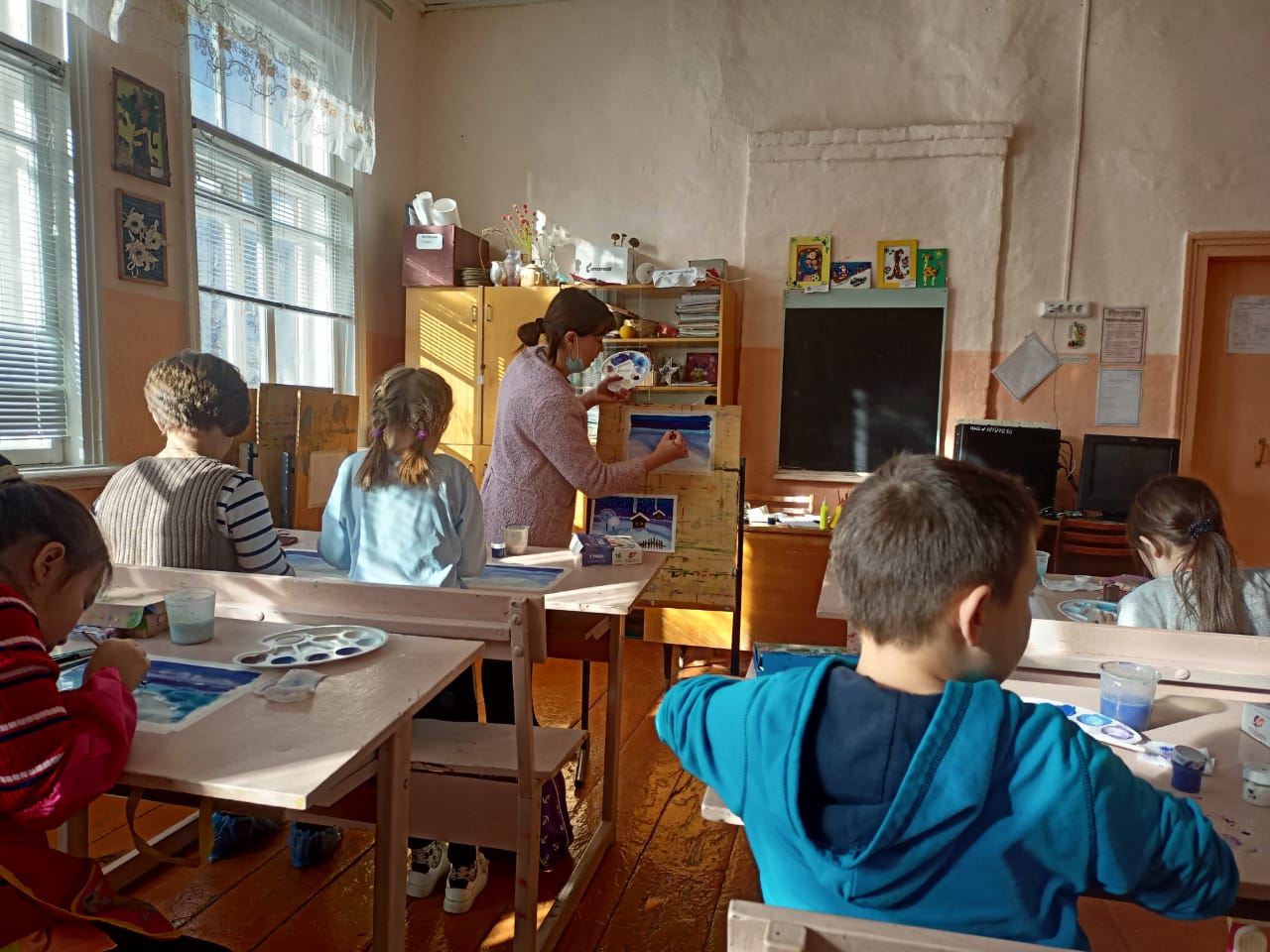 9 февраля 2021 года в объединении «Изобразительное искусство» (педагог Хакимова Л. Г.) прошел мастер-класс на тему «Зимний пейзаж» для обучающихся и их родителей.