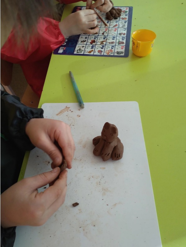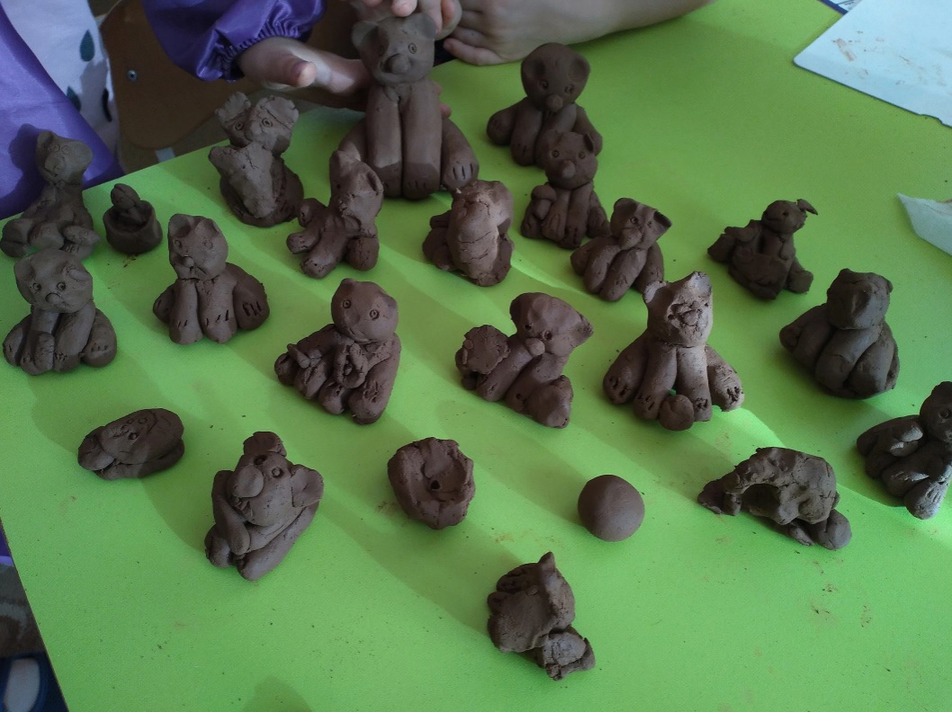 Под таким названием прошло занятие в подготовительных группах в детском саду. Целью занятия было научить детей лепить животное из нескольких частей, закрепить приёмы раскатывания, скатывания, примазывания, воспитывать самостоятельность, любовь к животным. Дети с радостью приняли предложение слепить любимое животное. Вспомнили сказки с участием мишки, изучили его характер, образ жизни, строение тела, отгадывали загадки. Дети лепили с увлечением, работы получились неповторимые и забавные!