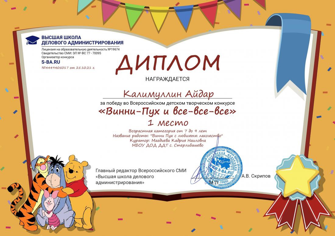 Поздравляем участников Всероссийского детского творческого конкурса "Винни-Пух и все-все-все" и их кураторов с заслуженной победой!