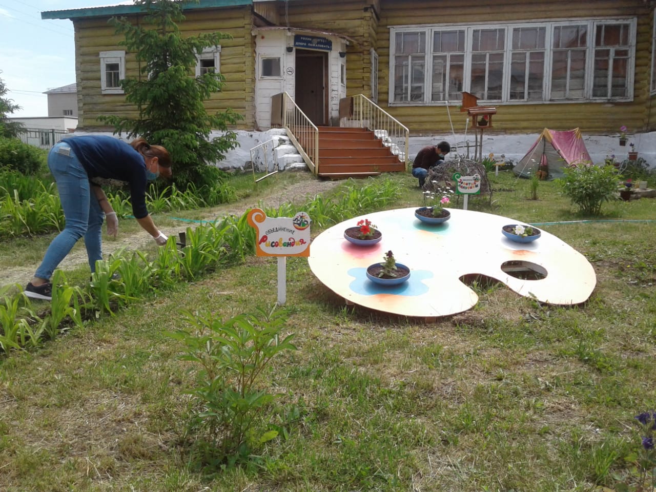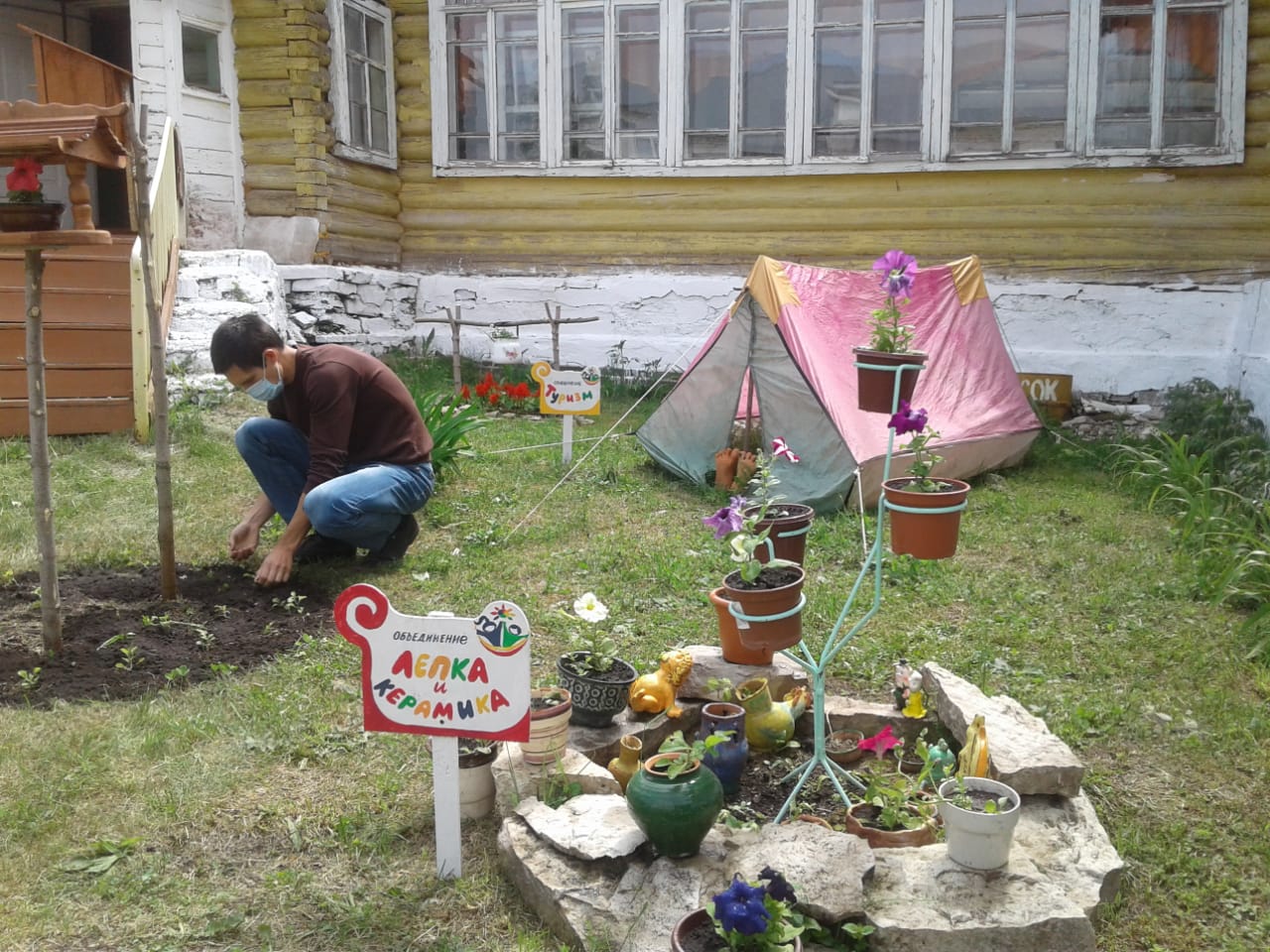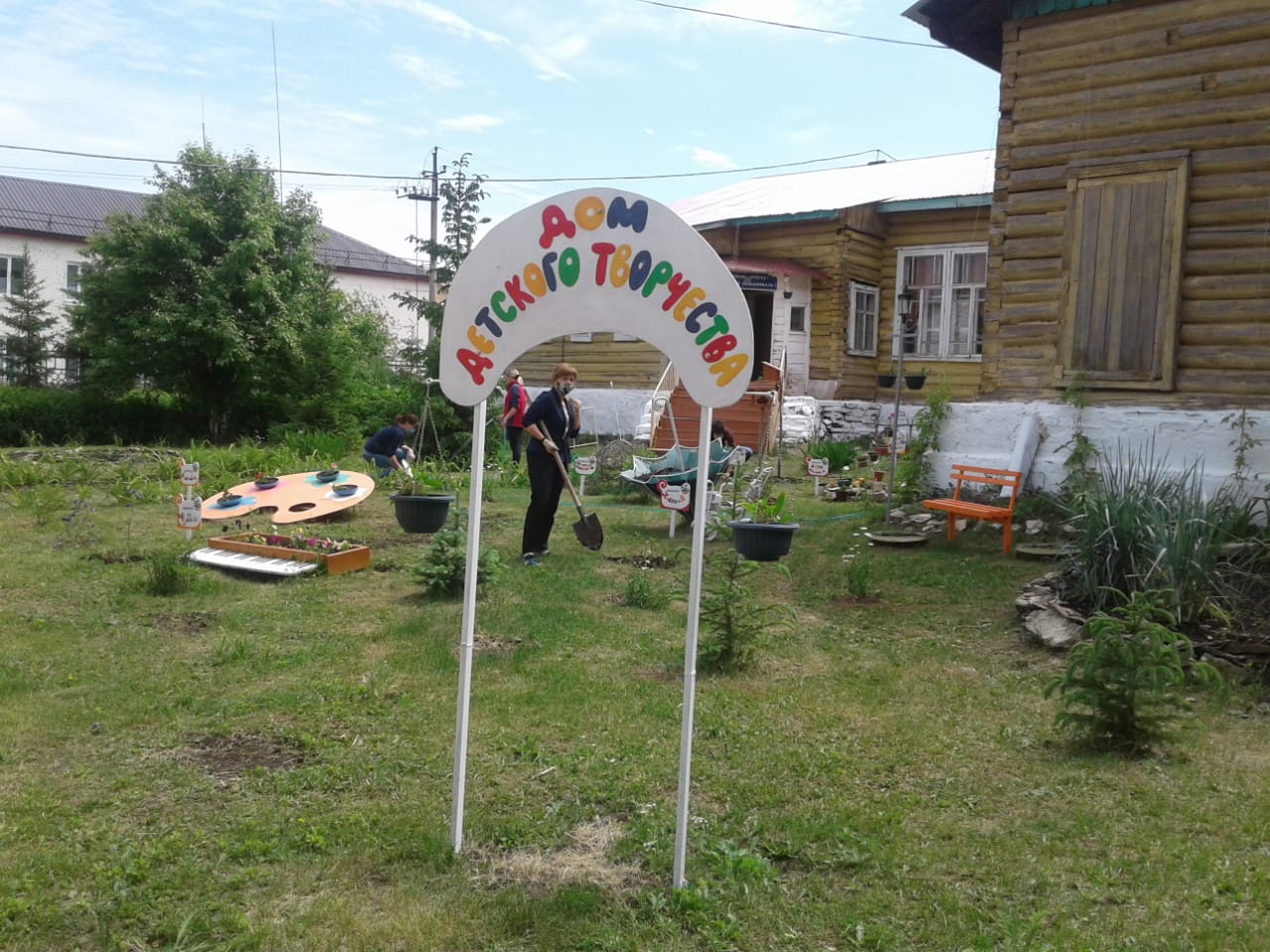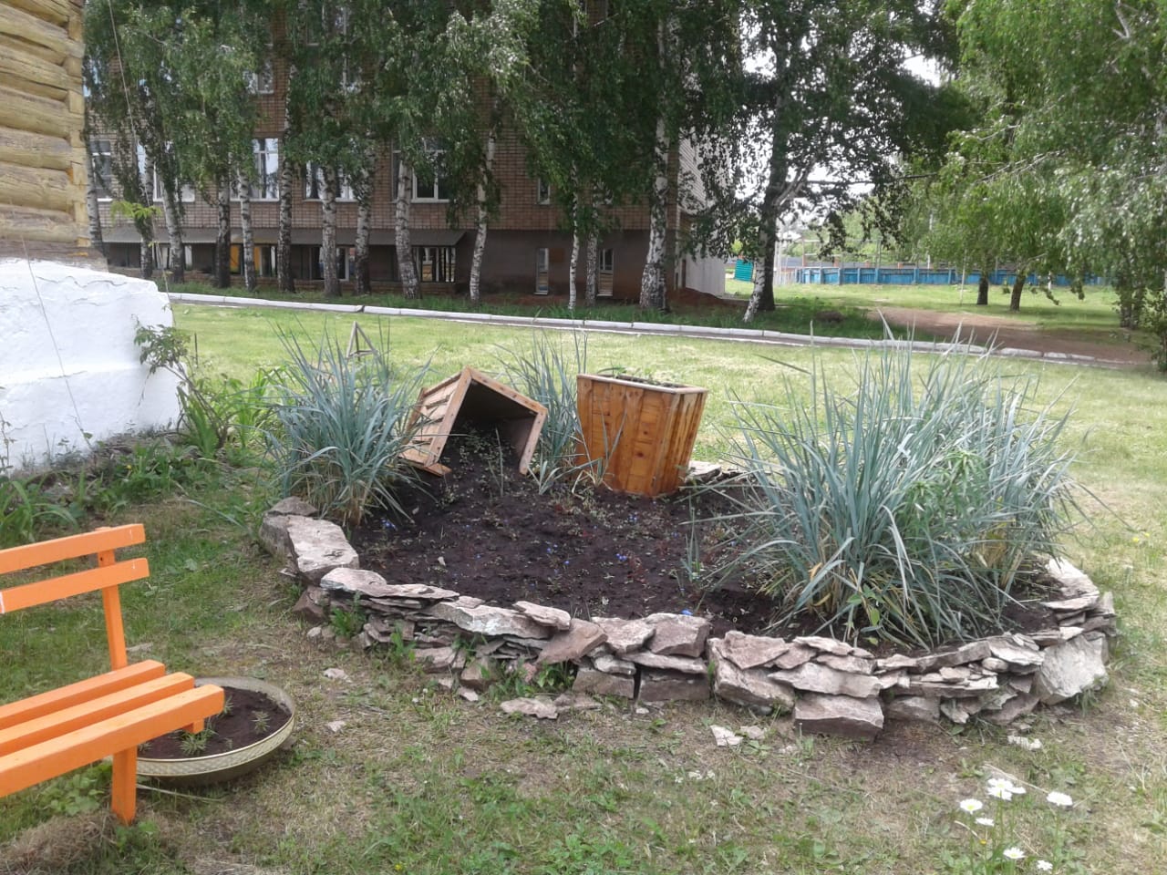 Не остался в стороне и коллектив Дома детского творчества с.Стерлибашево. Работа началась еще зимой, когда были посеяны семена для выращивания цветочной рассады. С ранней весны началось благоустройство прилегающей территории Дома детского творчества, взяв за основу оформления эмблему Года эстетики, мы решили оформить наш участок в виде стилизованного парка, представив в виде арт-объектов объединения дополнительного образования ДДТ.